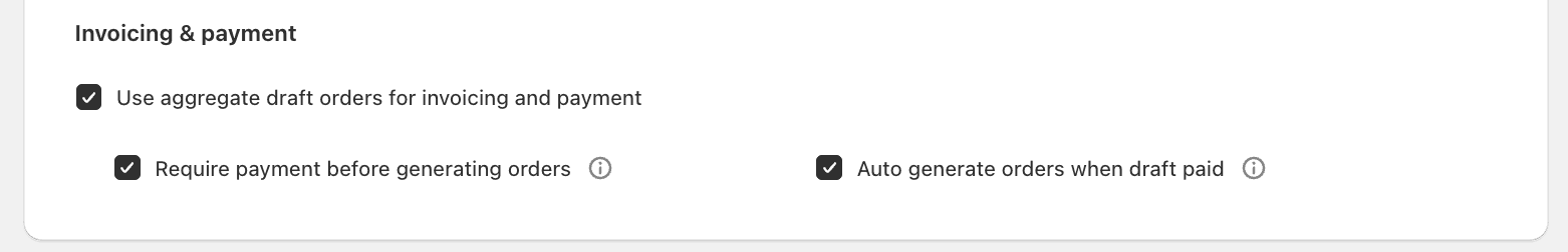 Require payment before generating orders: when enabled, this setting prevents accidentally generating 10s or 100s of orders without first collecting payment from the billng customer.